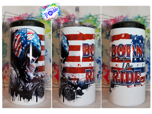 Take on any adventure with confidence with our Born to Ride 4 in 1 Tumbler/Can Cooler! Keep your drinks at the perfect temperature for up to 6 hours warm or 12 hours cold. With a versatile design that fits regular or skinny cans as well as glass bottles, you'll never have to sacrifice refreshment on the go. Comes with a lid and straw for added convenience. The ultimate choice for thrill-seekers!