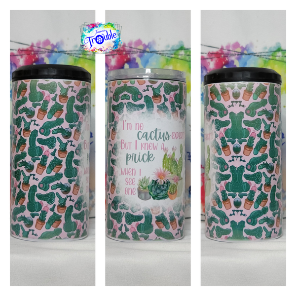 Stay hydrated and entertained with the Cactus Expert tumbler and can cooler combo! This 16 oz steel tumbler keeps drinks hot for 6 hours or cold for 12, while the rubber top fits regular or skinny cans and bottles. Plus, the quirky design adds a touch of fun to your sipping experience!