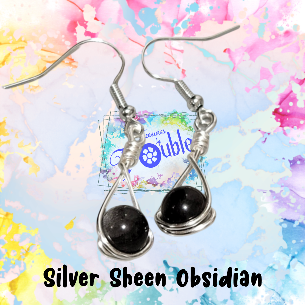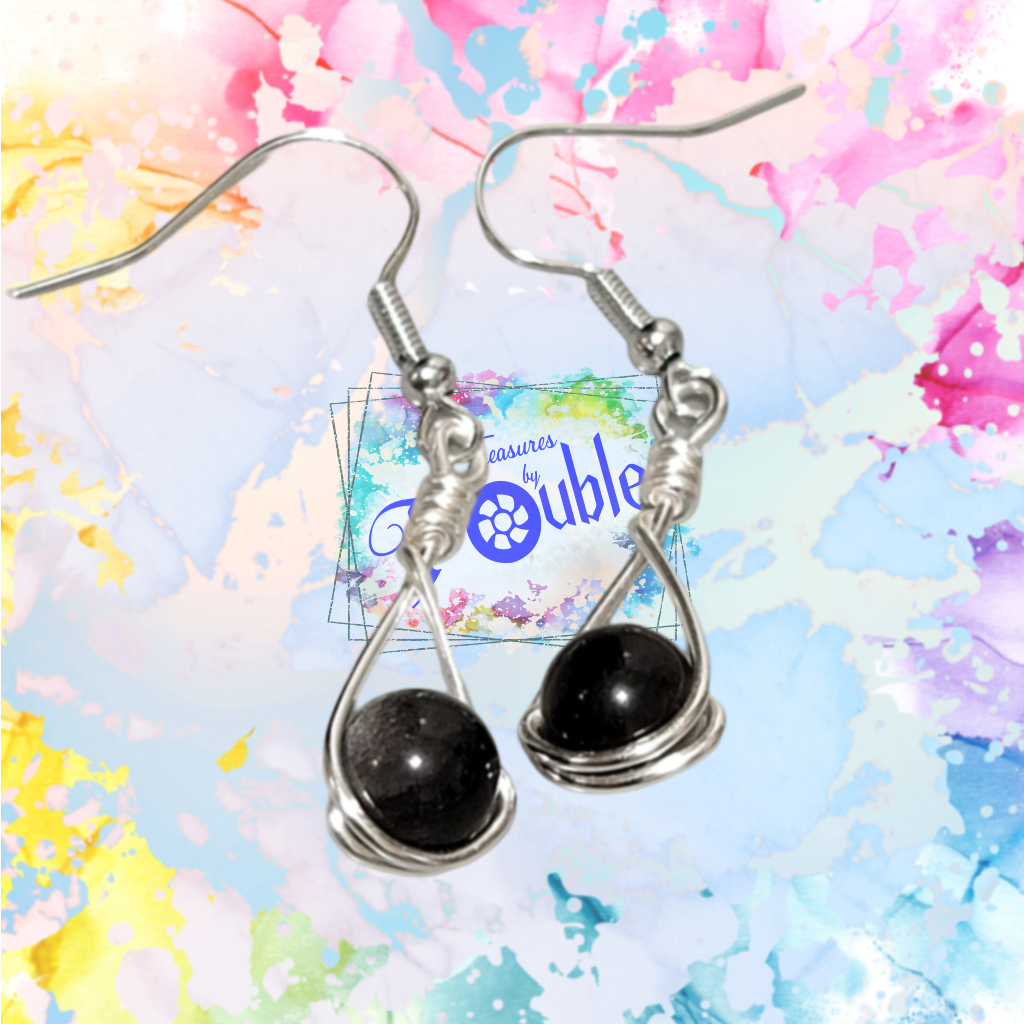 Experience the natural beauty and elegance of obsidian with our handmade drop earrings. Each pair features 8mm round obsidian beads flawlessly wrapped in silver plated copper wire and finished with hooks for easy wear. Elevate your style and connect with the earth's energy with these stunning earrings.