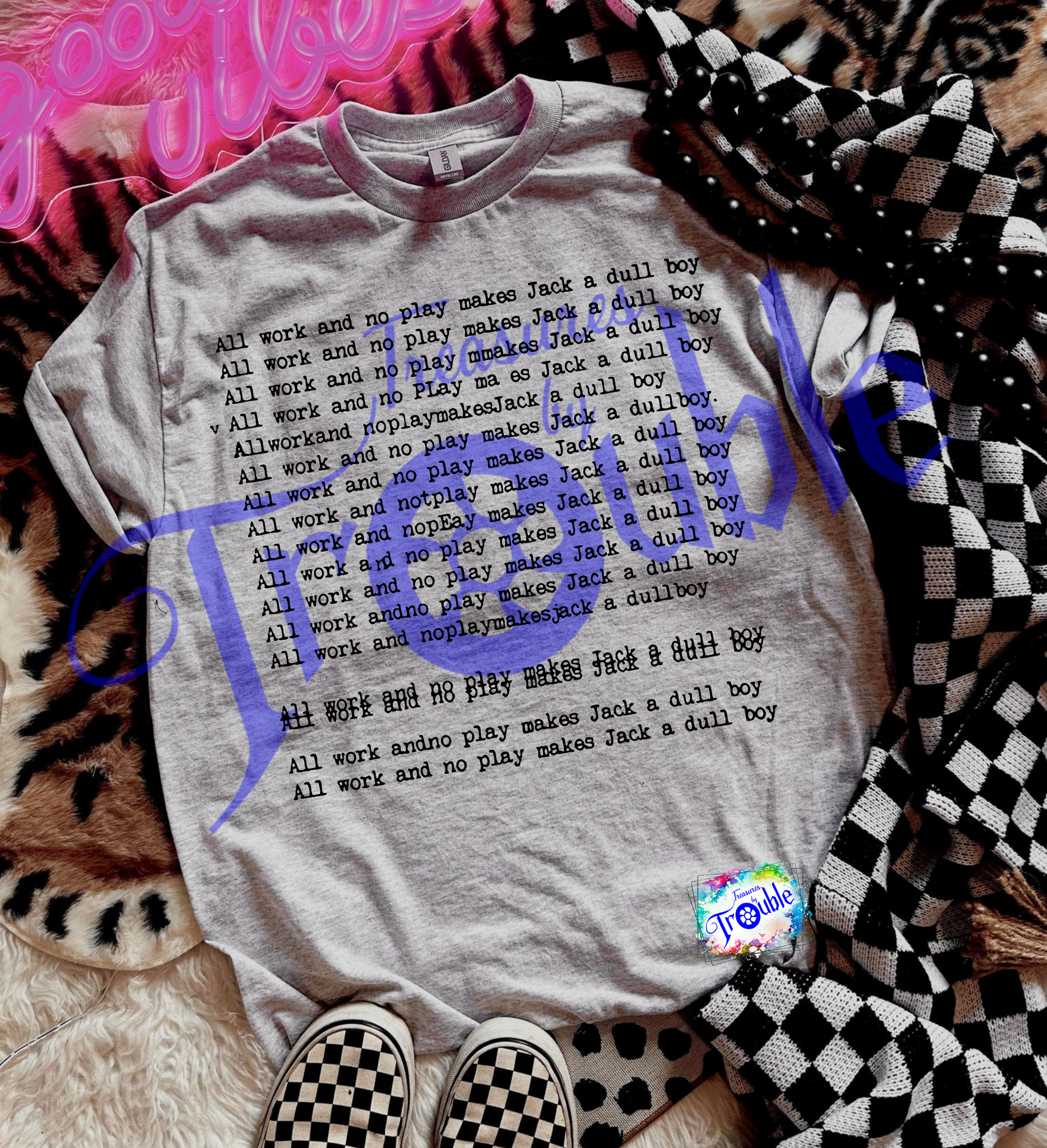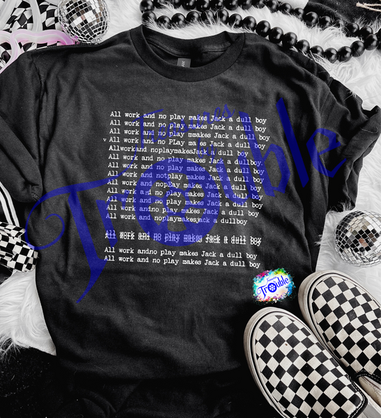 Unleash your inner horror fan with our All Work No Play Horror Movie Cotton Short Sleeve Tee! Crafted from soft, breathable Gildan cotton, this unisex tee offers all-day comfort. The vibrant DTF image adds a touch of fun and attitude to any outfit. Be ready to turn heads and make a statement!