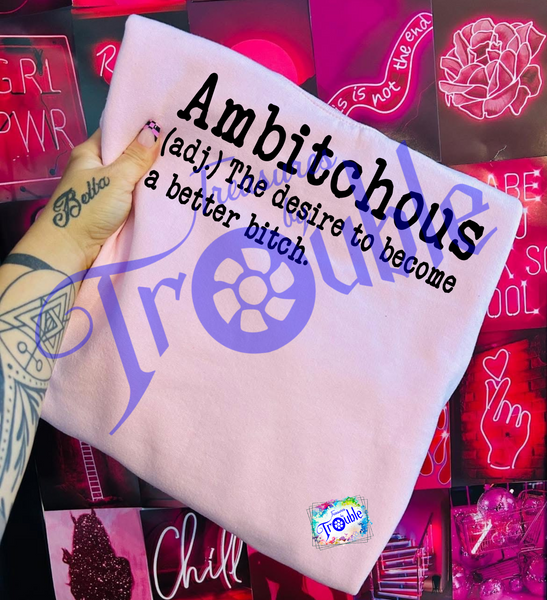 Unleash your inner sass with our Ambitchous Cotton Short Sleeve Tee! Made from soft, breathable Gildan cotton, this unisex shirt keeps you comfy all day. Featuring a vibrant, high-quality DTF image, it's the perfect addition to your wardrobe for adding some fun and attitude to your everyday style!