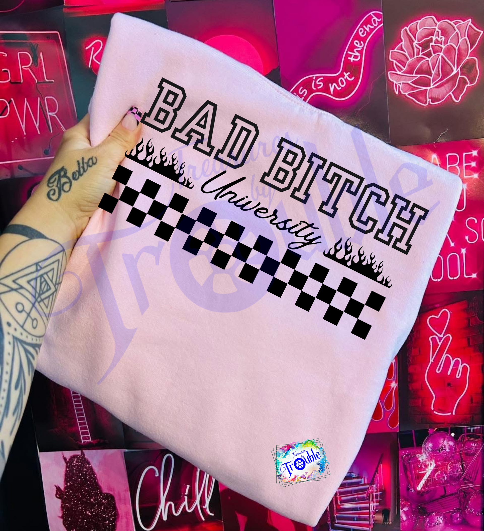 Unleash your inner rebel with our Bad B*tch University Cotton Short Sleeve Tee! Made from breathable Gildan cotton, this unisex shirt is perfect for your everyday adventures. The bold DTF image adds attitude and fun, while the soft fabric keeps you comfortable all day long. Take on the day in style and confidence.