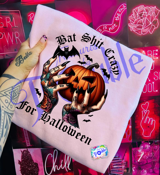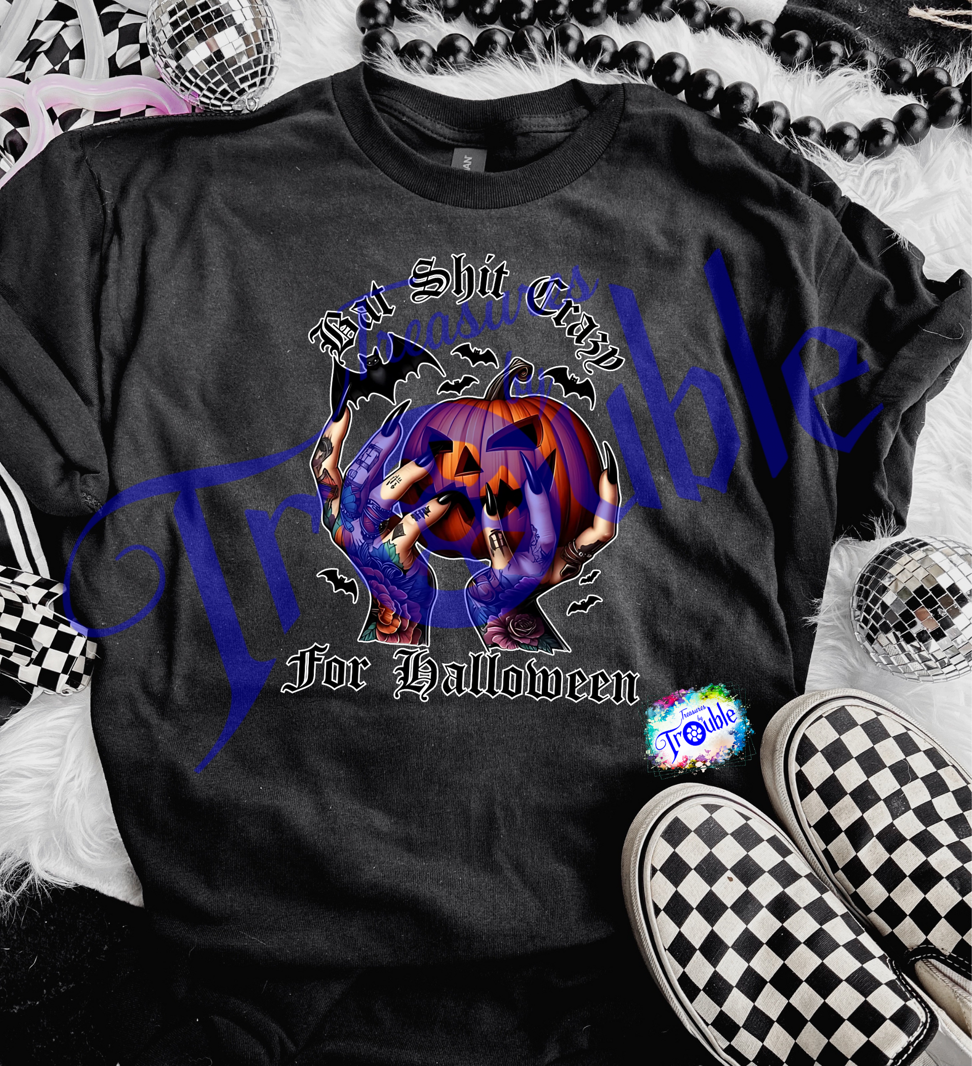 Add a splash of fun and attitude to your everyday look with our Bat Sh*t Crazy for Halloween Cotton Short Sleeve Tee! Made from soft, breathable Gildan cotton for all-day comfort. The vibrant, high-quality DTF image will definitely turn heads. Unleash your wild side this Halloween.