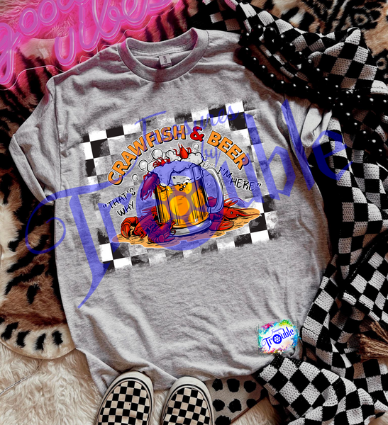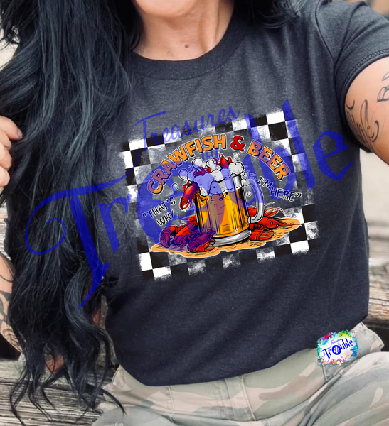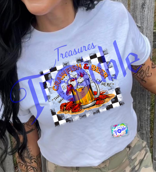 Be the life of the party in our Crawfish and Beer Cotton Short Sleeve Tee! Made from soft, breathable Gildan cotton, this unisex shirt offers all-day comfort. With a bold, high-quality DTF image, it's perfect for adding a touch of fun and attitude to any outfit. (Crack open a cold one and get ready to shine!)