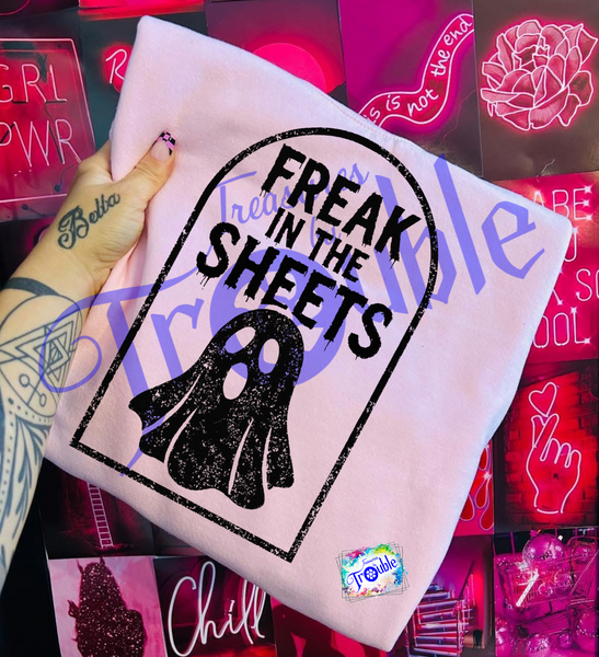 Add some fun and attitude to your wardrobe with our Freak in the Sheets Cotton Short Sleeve Tee! Made from soft, breathable Gildan cotton, it's perfect for all-day comfort. Plus, the vibrant DTF image is sure to turn heads and make you stand out from the crowd. Get ready to be a freak in the sheets (and on the streets) with this playful and unique shirt.
