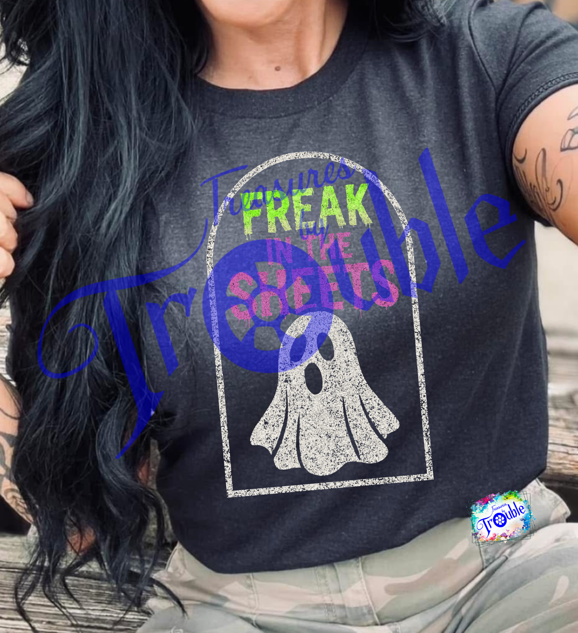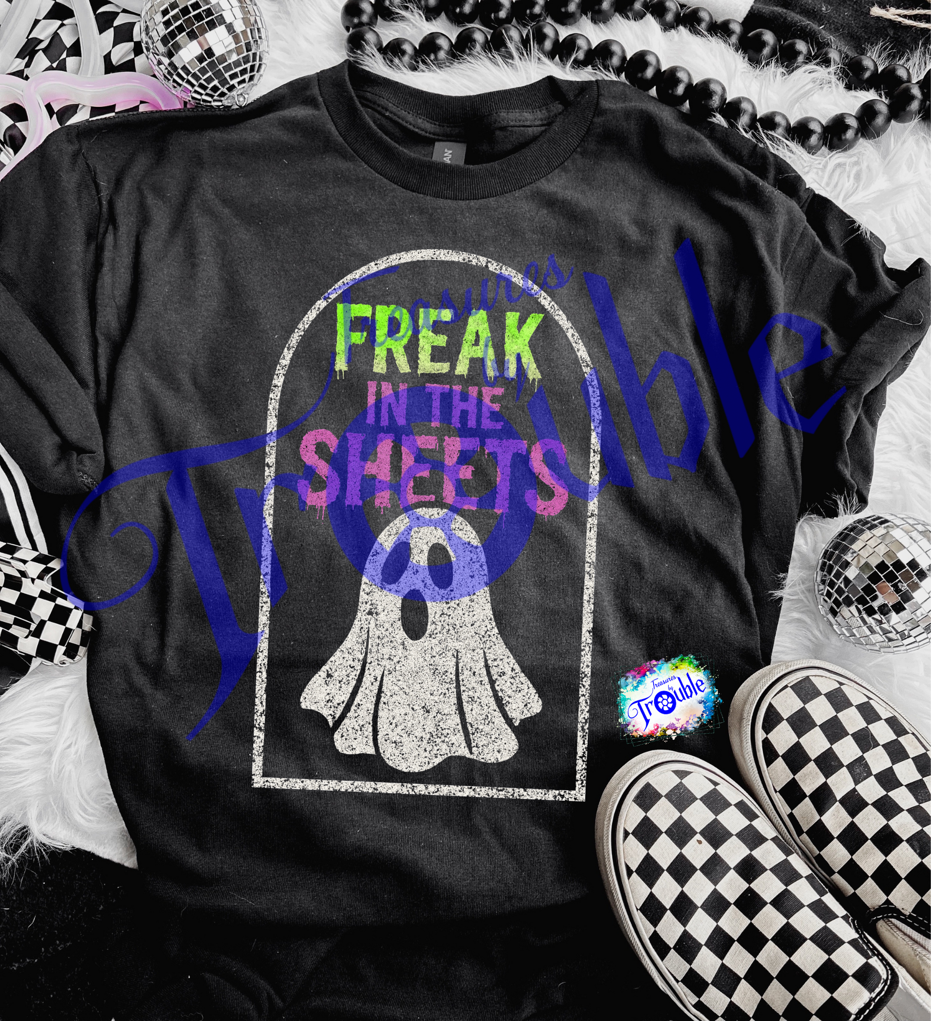Get ready to turn heads with our Freak in the Sheets Cotton Short Sleeve Tee! Made with breathable Gildan cotton, this unisex shirt keeps you comfortable all day while you unleash your killer fashion sense. Featuring a vibrant DTF image, it's the perfect way to showcase your playful and edgy side. Available in black for maximum impact.