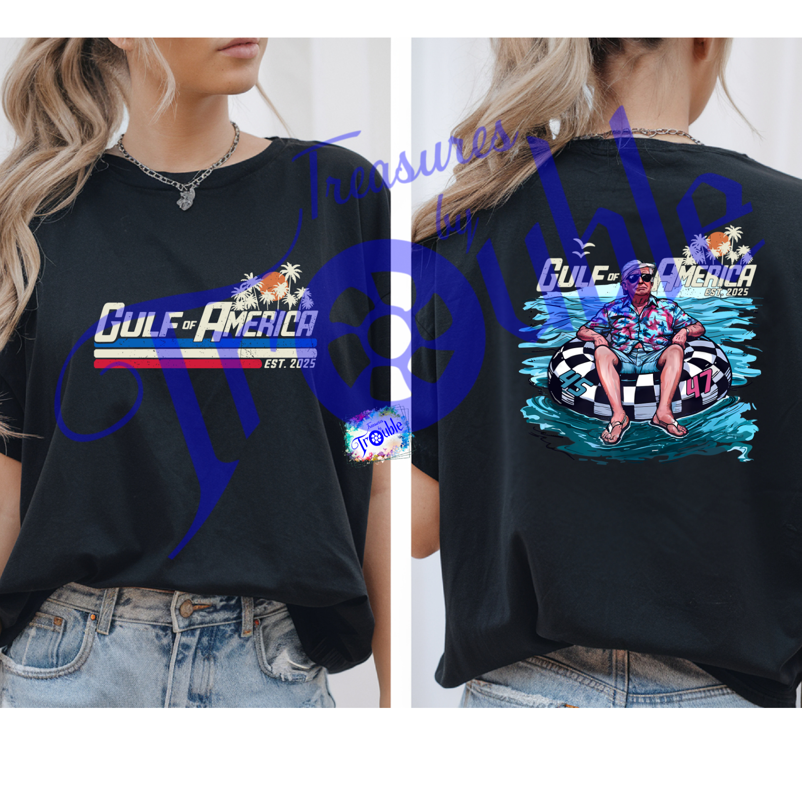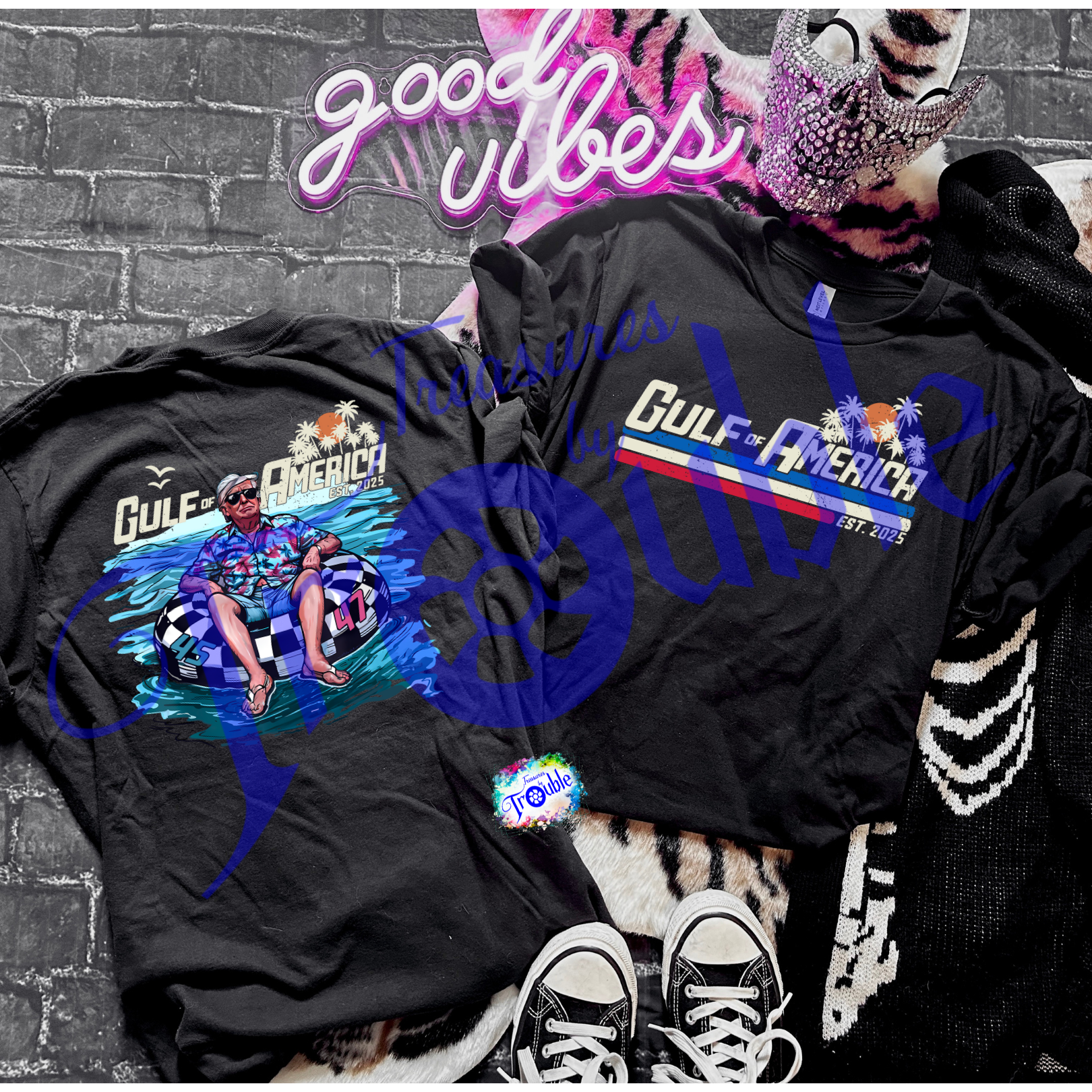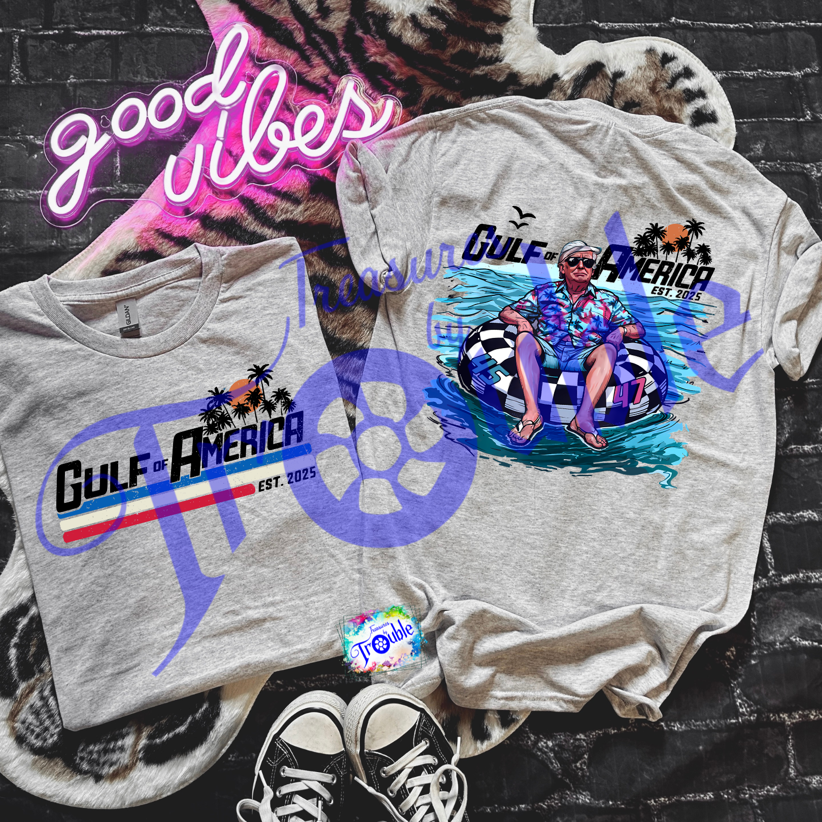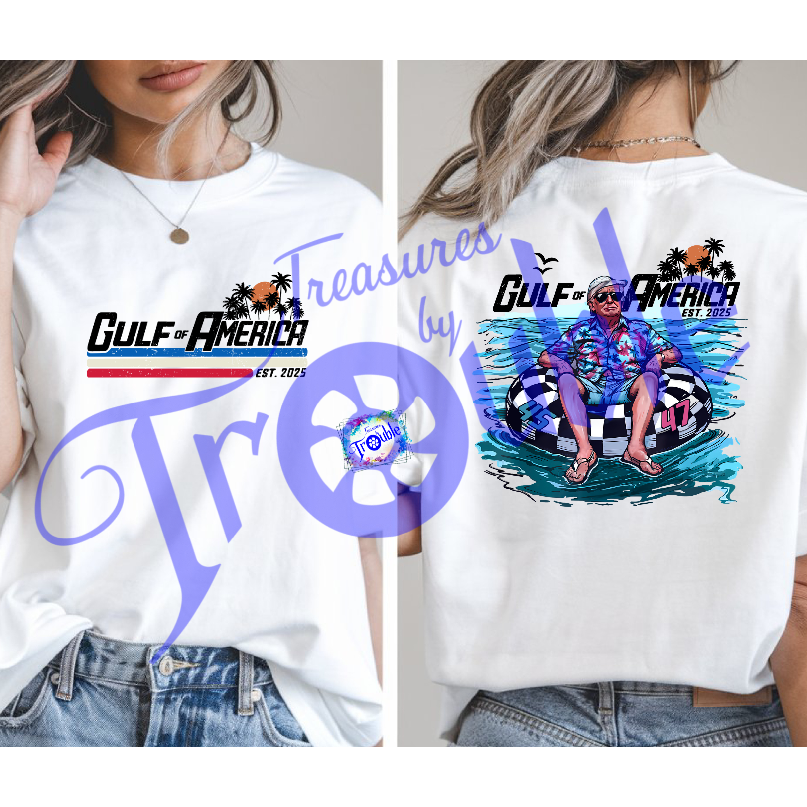 Unleash your playful side with our Gulf of America Cotton Short Sleeve Tee! Made from breathable Gildan cotton, this unisex shirt will keep you comfortable all day long. The vibrant DTF image adds a splash of fun and attitude to your everyday style. Don't forget to pair it with our matching trucker hat for a complete look!