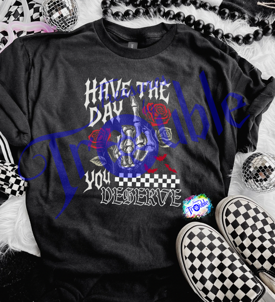 Experience the ultimate comfort and style with our 'Have the Day You Deserve' Cotton Tee! Made from soft, breathable Gildan cotton, this shirt is perfect for any day. And with a bold, high-quality graphic, you'll definitely stand out in the crowd. Make a statement with this black-only tee!