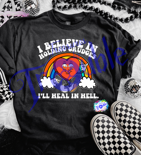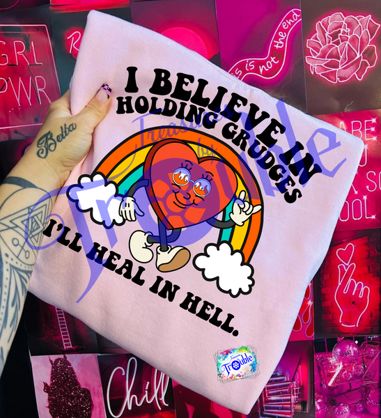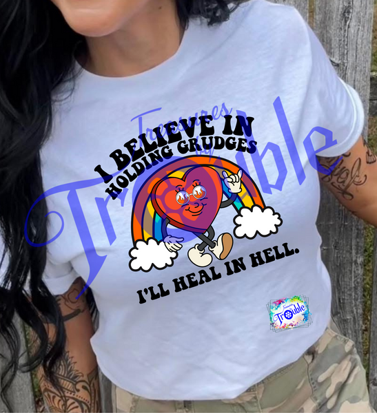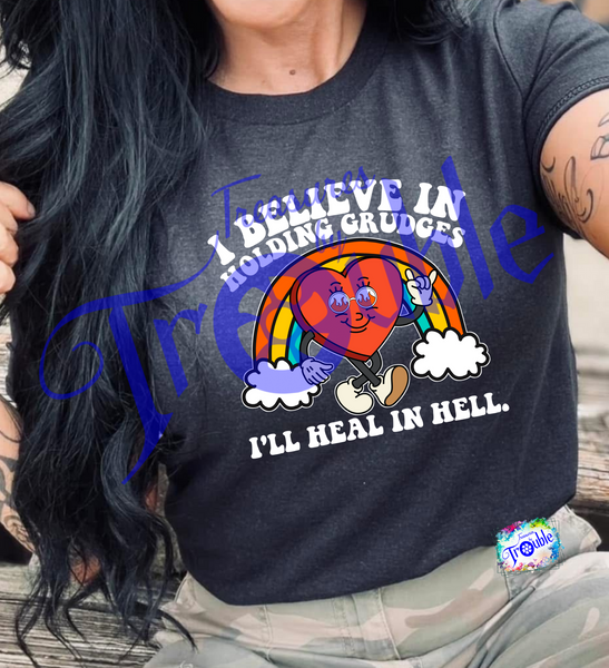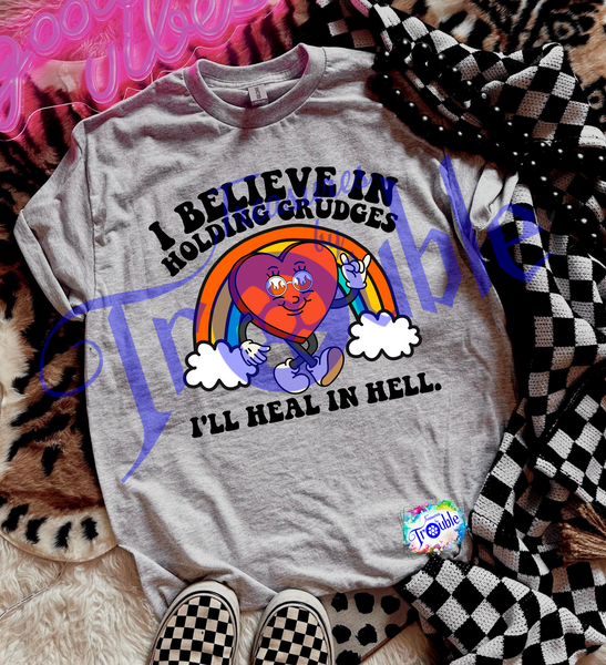 Unleash your rebellious side with our "I Believe in Holding Grudges" Cotton Short Sleeve Tee. Made from soft, breathable Gildan cotton, this unisex shirt keeps you comfy while making a statement. Show off your bold and fun attitude with the vibrant, high-quality DTF image.