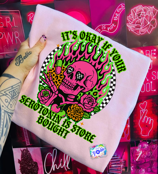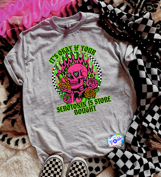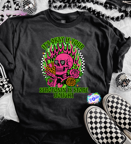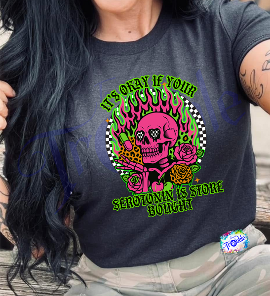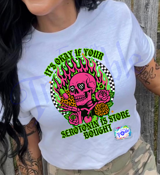 Looking for a fun and comfortable shirt to add some attitude to your everyday look? Look no further than our "It's OK if Your Serotonin is Store Bought" Cotton Short Sleeve Tee! Made from soft, breathable cotton and featuring a high-quality DTF image, this unisex shirt is perfect for any casual occasion. So go ahead and cause some mischief or just chill out, this tee has got you covered in style and comfort.