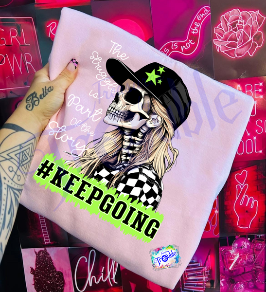 Stay comfortable and cool all day long in our Keep Going Cotton Short Sleeve Tee! Made from soft and breathable Gildan cotton, this unisex shirt features a vibrant and high-quality DTF image for a fun and edgy look. Perfect for any occasion, this tee adds a touch of playful attitude to your style.