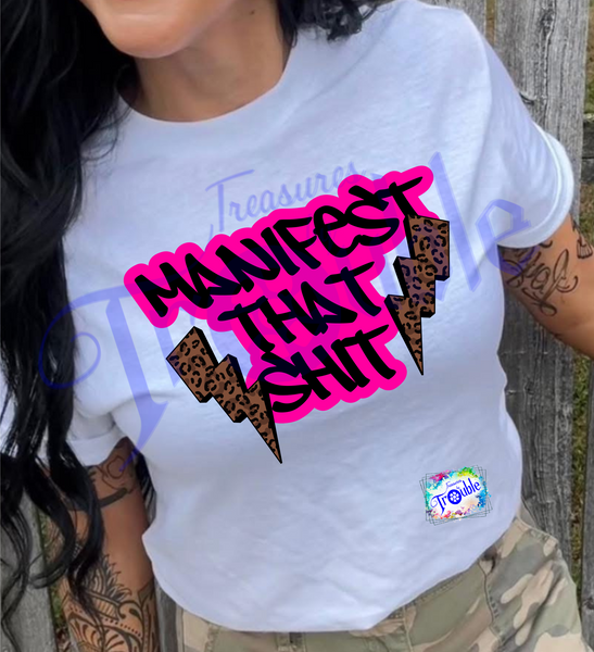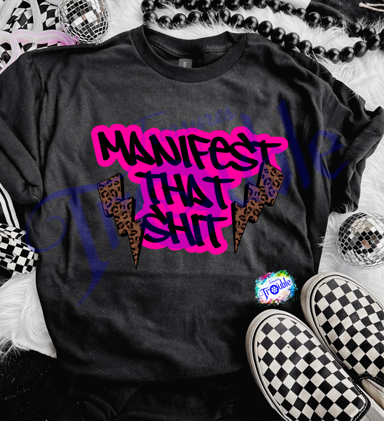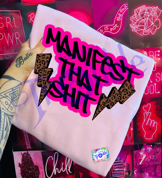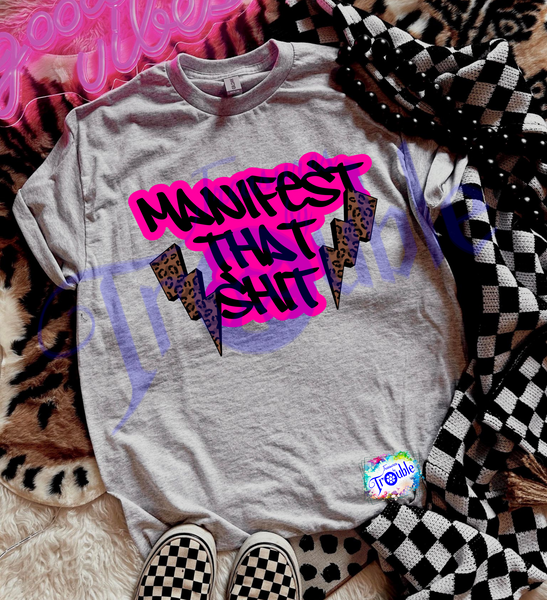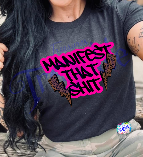Ready to manifest some serious style and comfort? Look no further than this Manifest that Sh*t Cotton Short Sleeve Tee! Soft and breathable, this Gildan cotton tee features a bold and colorful DTF image that adds a playful touch to any outfit. Perfect for causing a bit of trouble or just lounging around, this unisex tee has you covered in both fashion and fun.