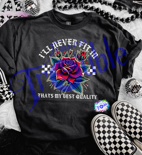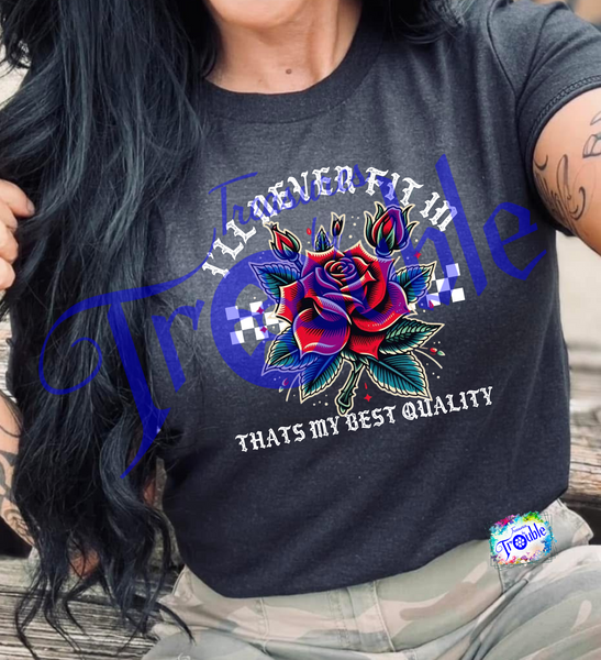 Stand out from the crowd with our Never Fit In Cotton Short Sleeve Tee! Made from soft, breathable Gildan cotton, this unisex shirt will keep you comfortable all day. With a bold, high-quality DTF image, you'll add a touch of fun and attitude to your everyday style. (No more blending in!)