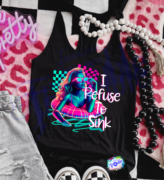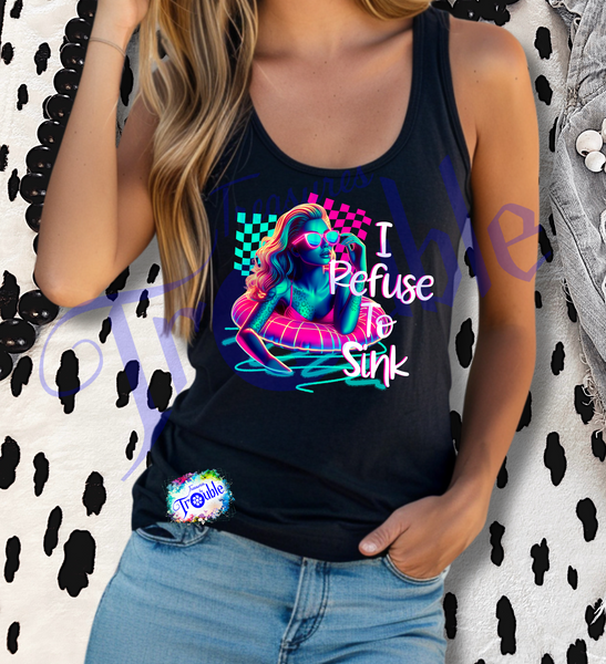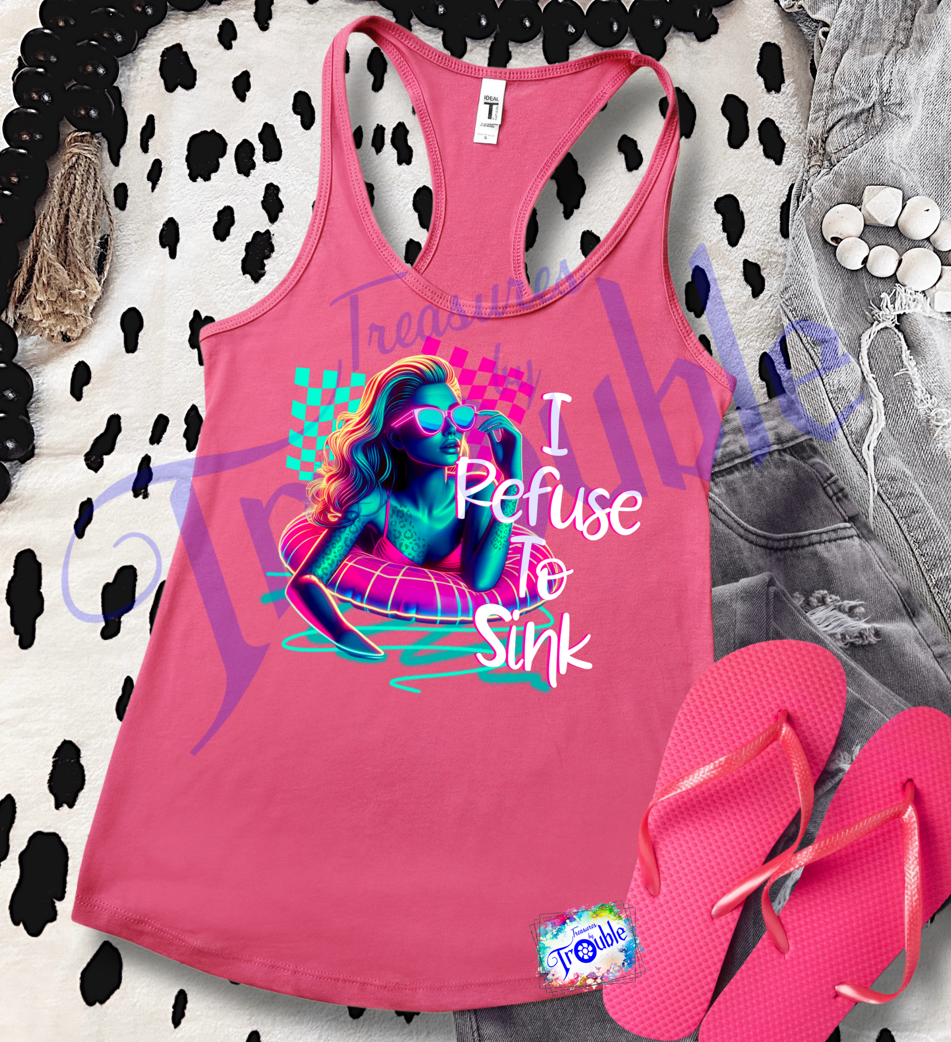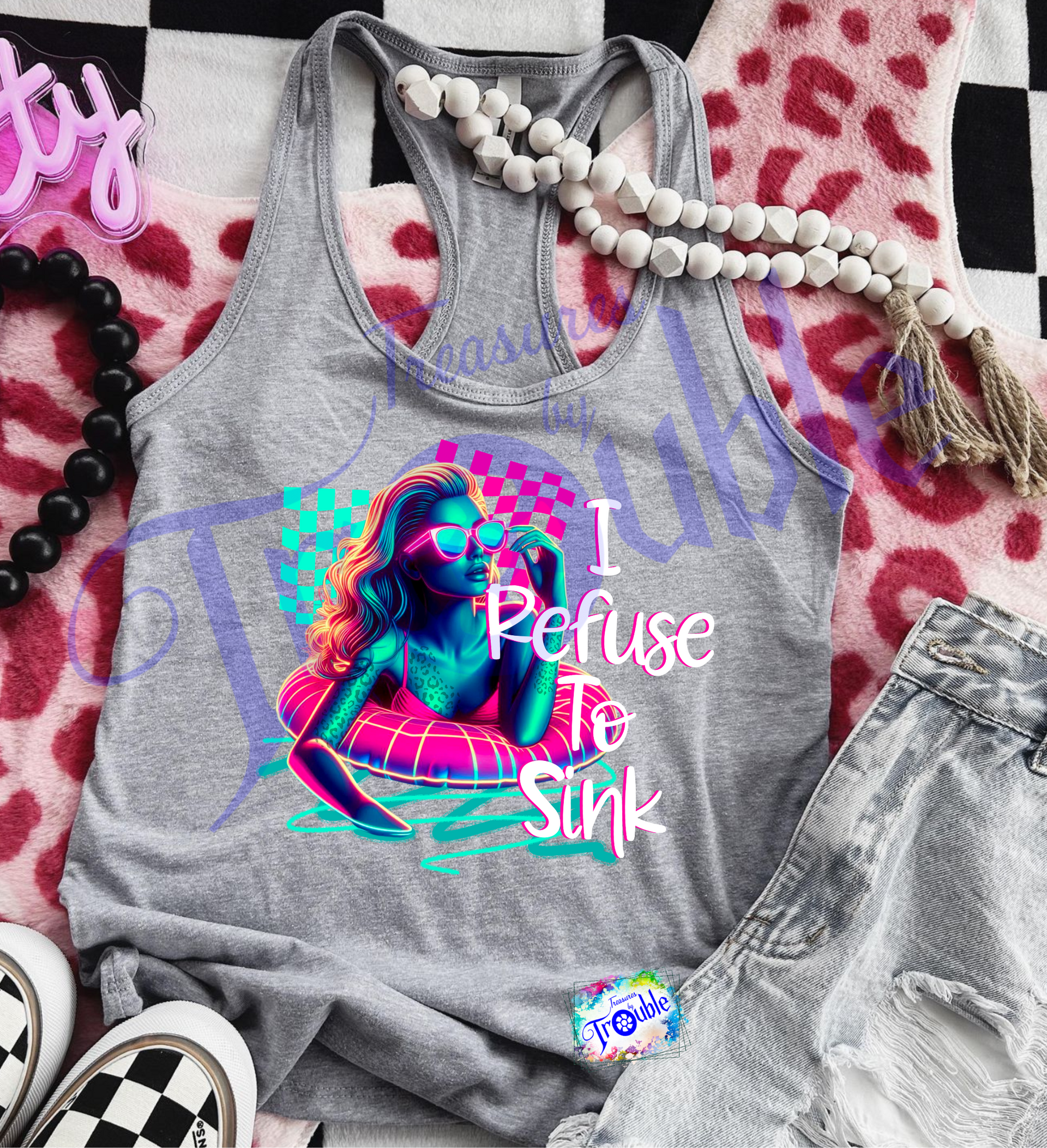 Take a stand with our "I Refuse To Sink" tank top! Made with high quality cotton, this ladies racerback tank boasts a bold DTF design. Empower yourself and showcase your determination with this must-have top. Available now!