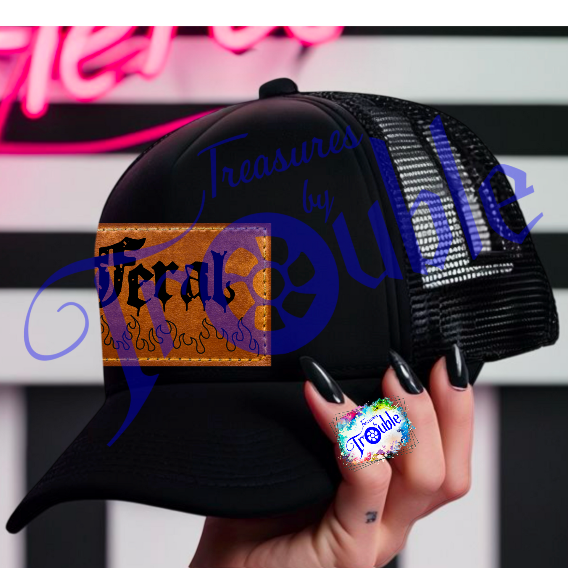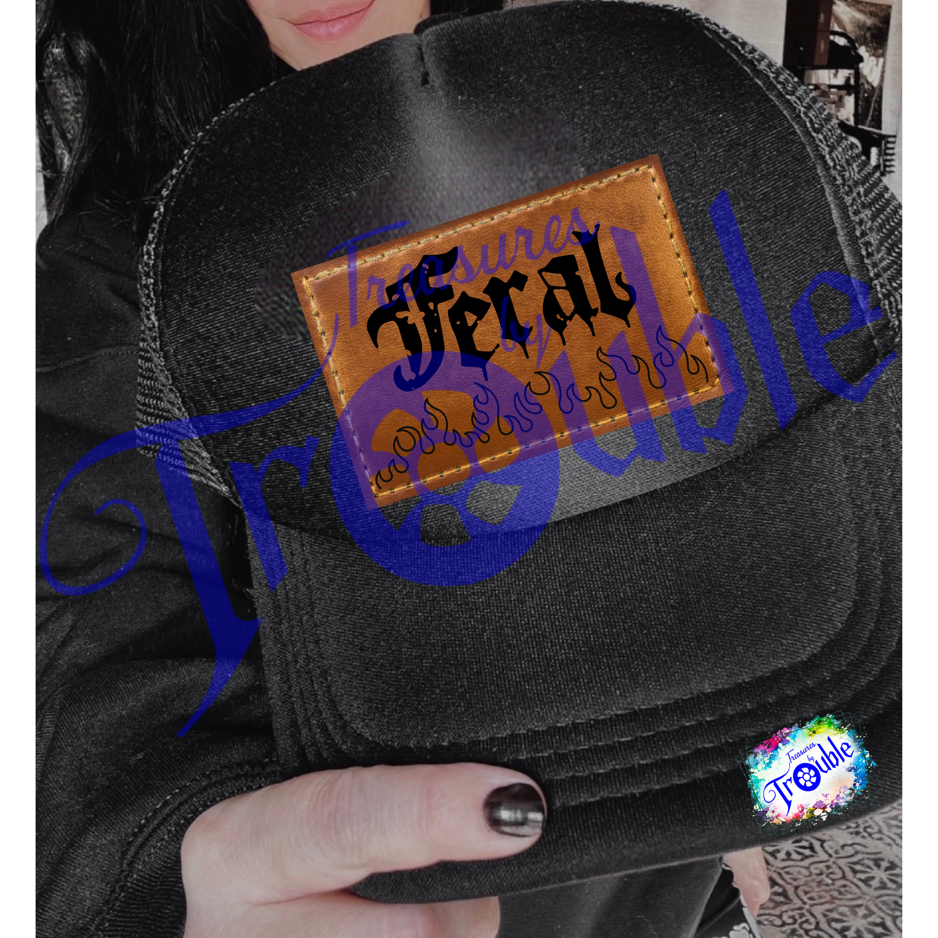 Feral Faux Leather Patch YP DTF Trucker Hat