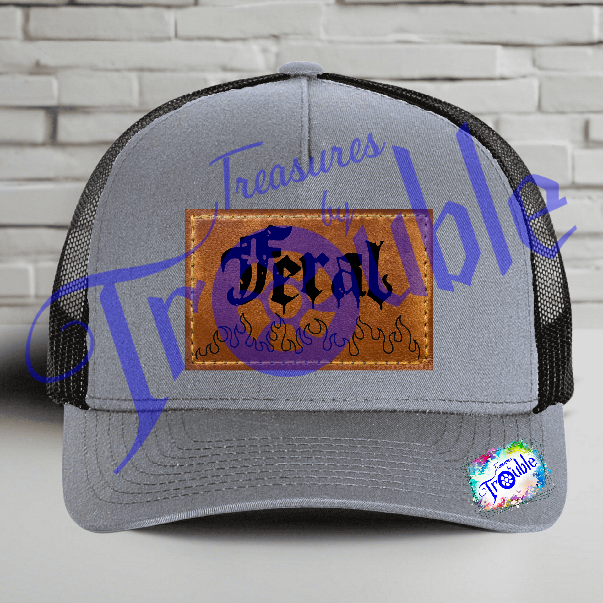 Get ready to cause some trouble with the Feral Faux Leather Patch YP DTF Trucker Hat! This 5-panel high crown Yupoong Classic trucker hat features a bold DTF print that will last. The mesh back and snapback fit provide a breezy and adjustable feel, while the multiple color options let you match your vibe. And with a unisex fit, this hat is perfect for all troublemakers.