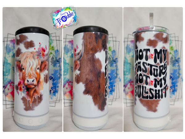 Looking for a tumbler that's not full of BS? This 4 in 1 tumbler has you covered! Keep your drinks hot or cold for hours with its vacuum insulated steel design. Plus, it comes with a rubber can cooler top and a rechargeable Bluetooth speaker for added fun. Moooove over boring tumblers!
