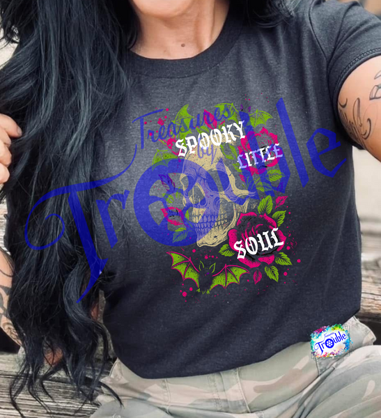 Unleash your killer fashion sense with our Spooky Soul Cotton Short Sleeve Tee. Made with breathable Gildan cotton, this unisex shirt keeps you comfy all day long. Featuring a vibrant DTF image, it's the perfect way to showcase your playful and edgy side. Available in black for maximum impact.
