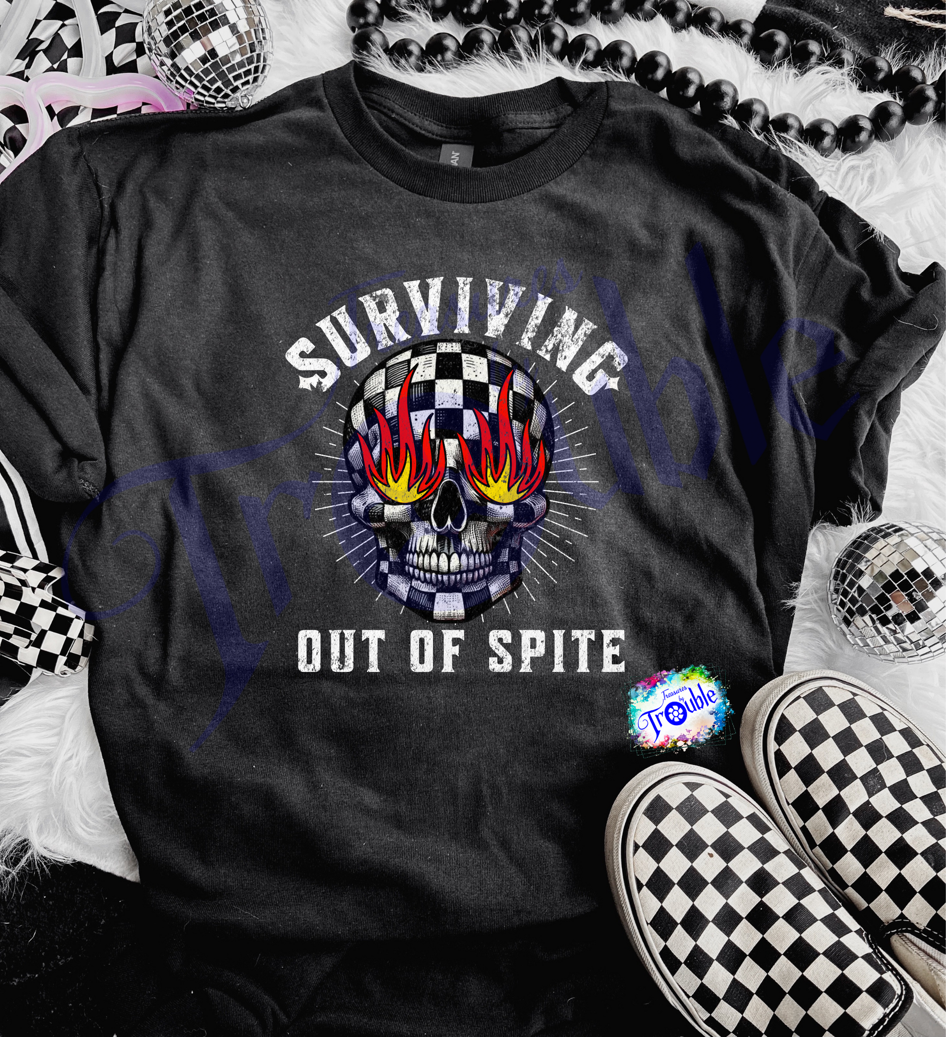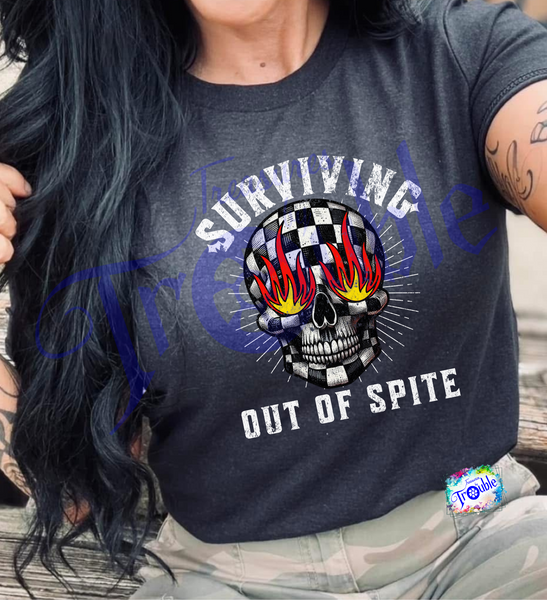Get ready to conquer the day with the Surviving Out of Spite Cotton Short Sleeve Tee! Made from soft, breathable Gildan cotton, this unisex shirt keeps you comfortable while you take on any challenge. With a vibrant DTF image, this tee adds a fun and edgy flair to your wardrobe. Only available in black, this tee is perfect for those who like to make a statement.