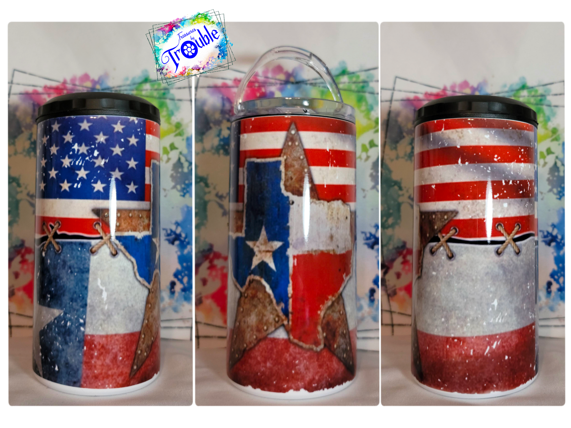 Take your Texas pride to-go with this 16 oz vacuum insulated tumbler and can cooler combo. Keep your drink warm for 6 hours or cold for 12 hours, while the tapered inside fits regular or skinny cans and glass bottles. Perfect for showing off your state love on the move!